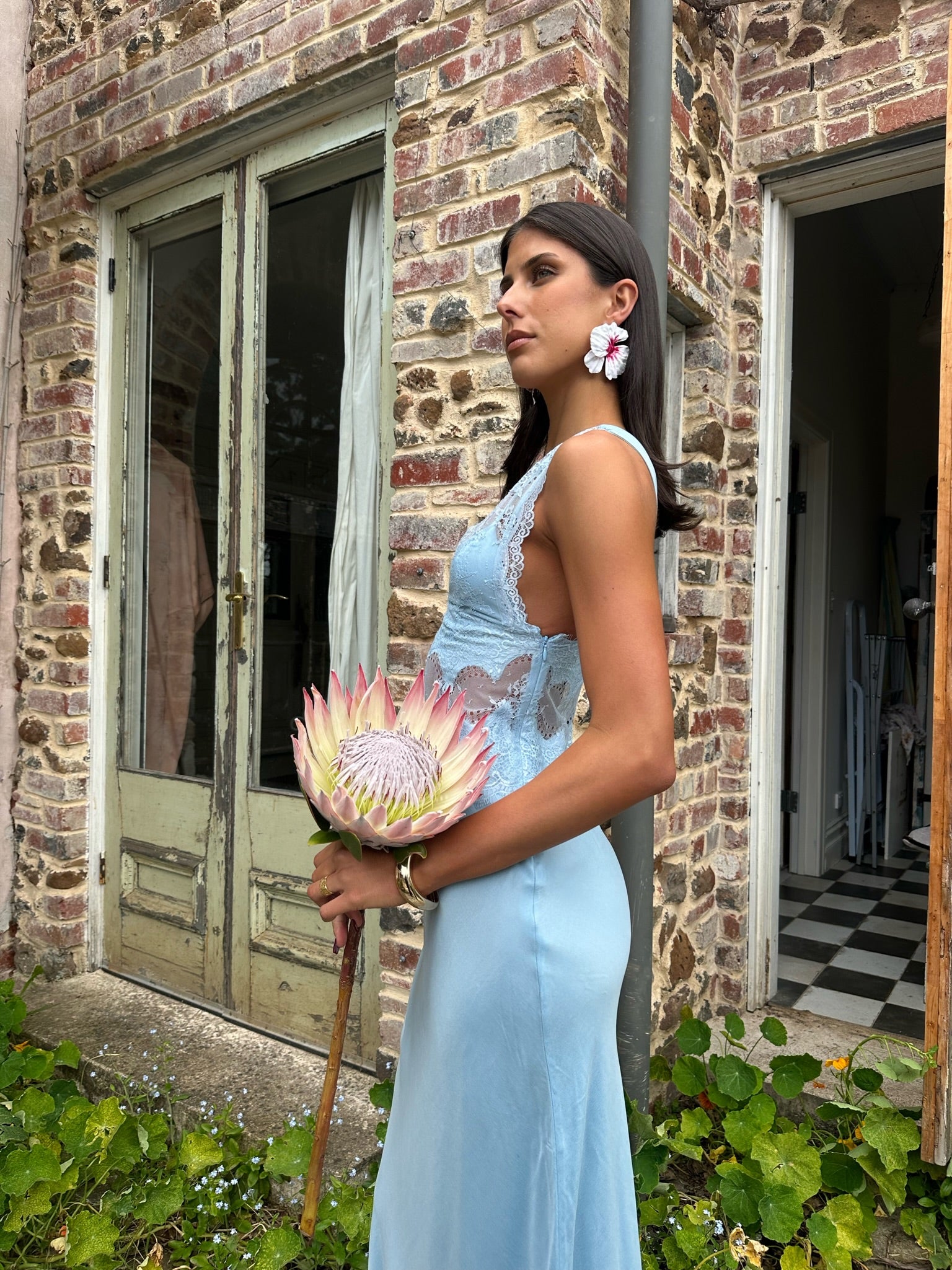 Introducing the Visions Lace Dress by Third Form, perfect for the spring races. This maxi features intricate lace detailing and a side zipper for an effortless fit. Our brunette model wears XS and our blonde model wears S. Please note that film photos make the dress appear lighter. The true shade is sky blue.