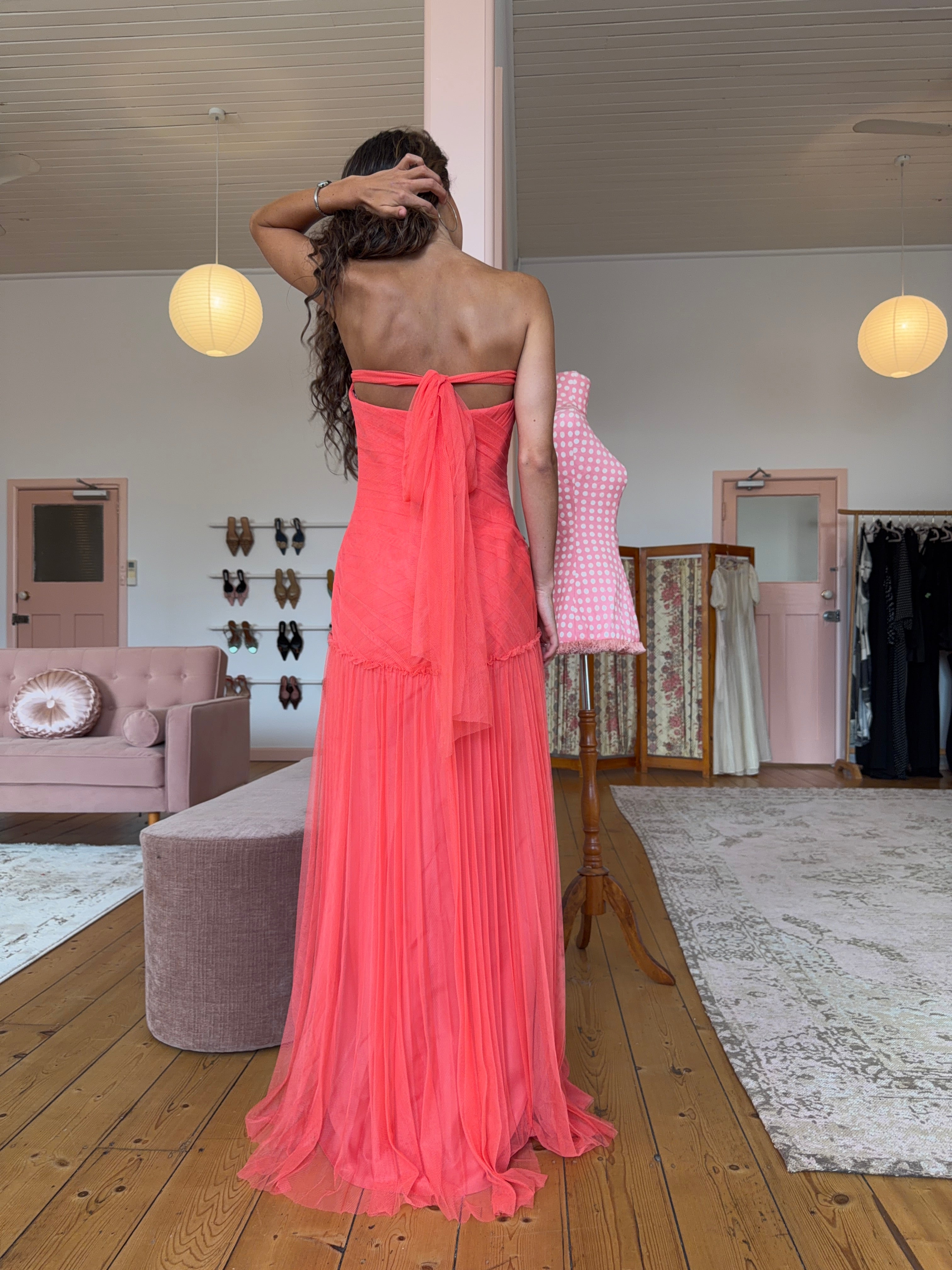 Bringing you a timeless vintage piece by Vera Wang, featuring an adjustable neck tie which can be worn halter, or tied to the back. Style has no stretch, best suited to 8.