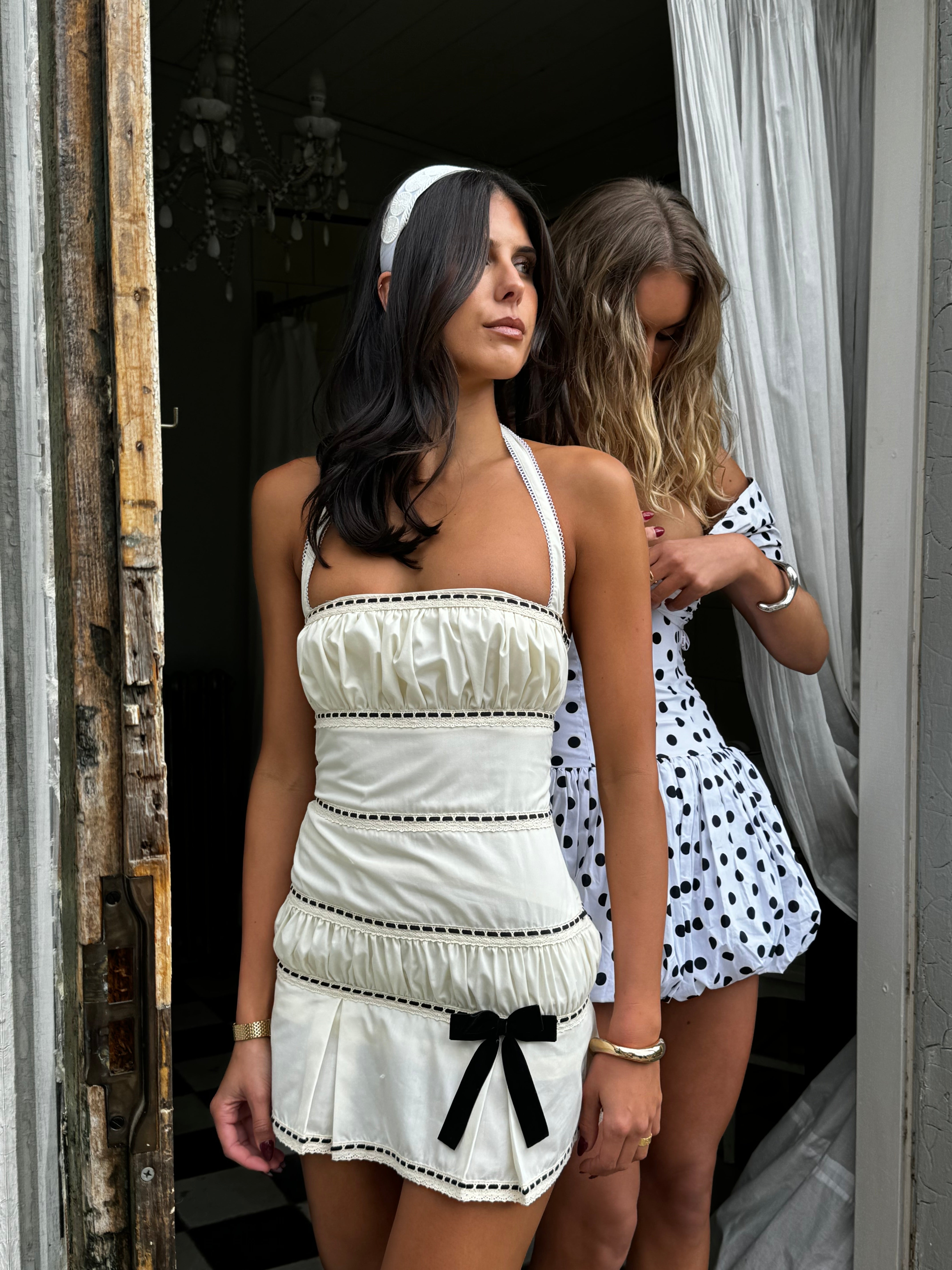 Meet Francine - the cutest cotton mini featuring adjustable halterneck tie straps and a side zip. Please note this dress is a small fit and is only suitable for Size 6 and smaller.