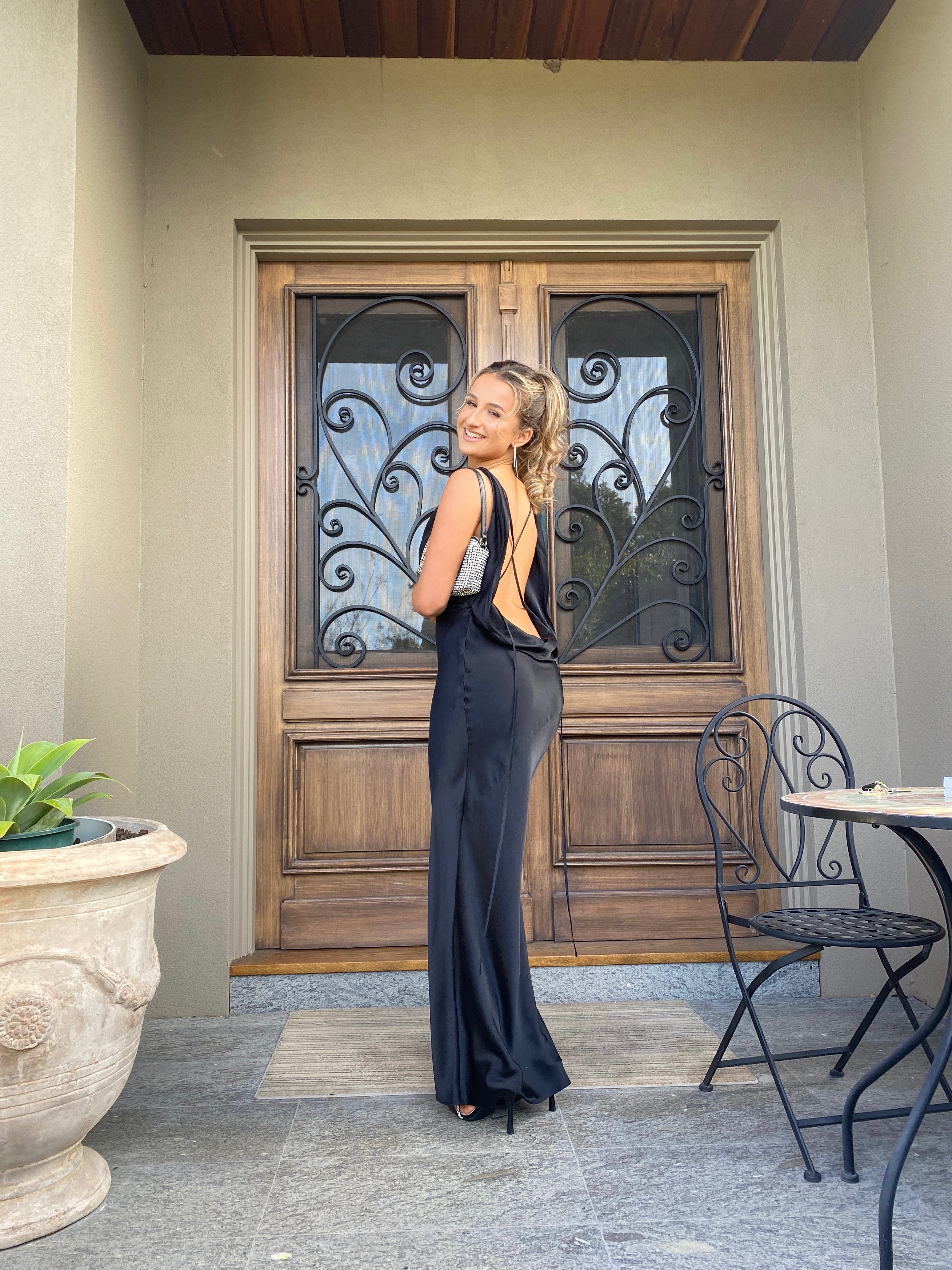 This gorgeous dress from Mirror Palais is a timeless, classy gown that shows off the back. All their garments are designed and made in NYC! Mirror Palais sizing runs small, so this piece fits like an S.