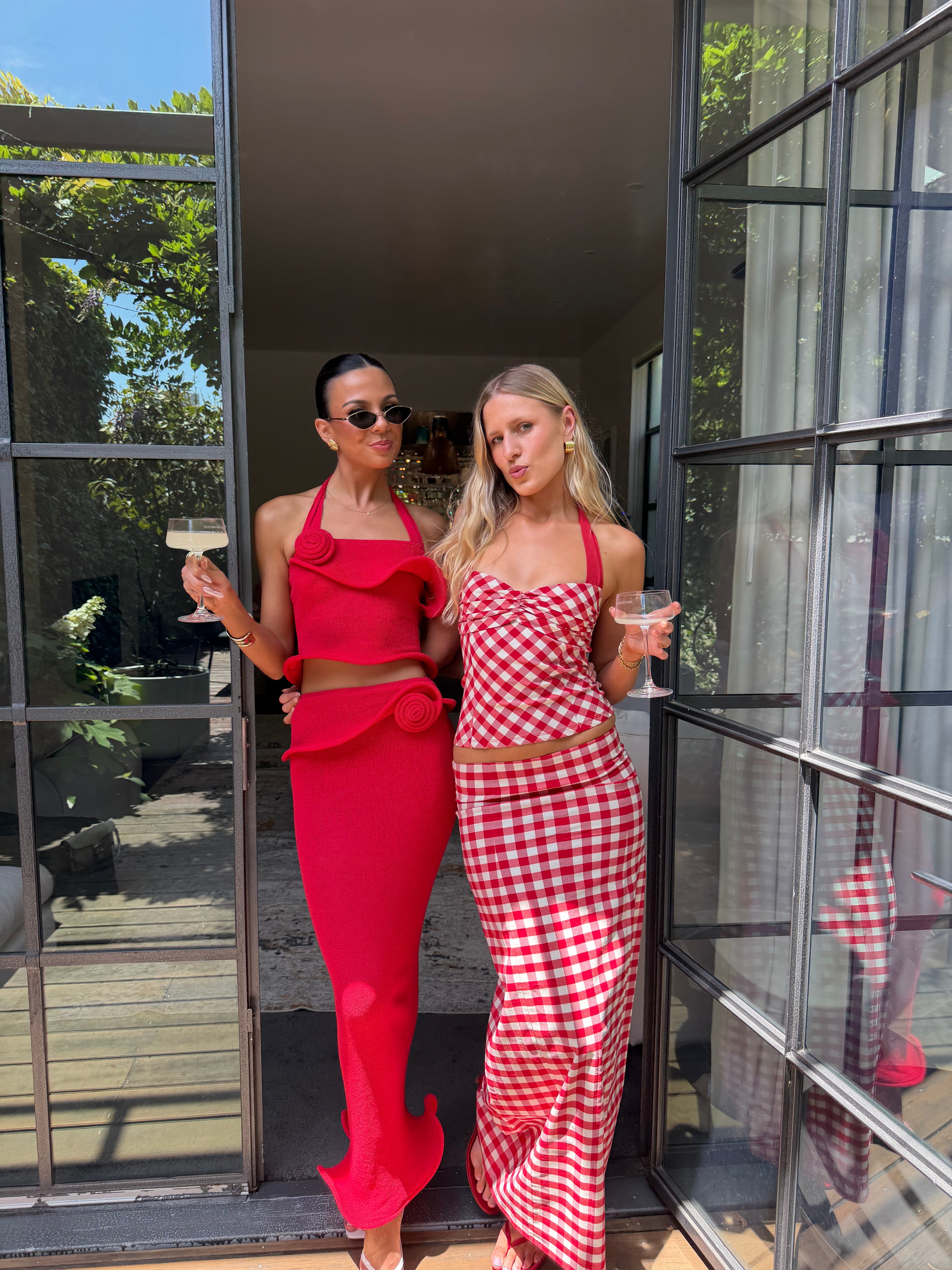 Christmas came early in the Kikki. A two piece set featuring a halter tie up top and low rise skirt. Top is labelled XS, best suited to 6-8. Skirt has been altered to fit S/8. Semi stretch material.