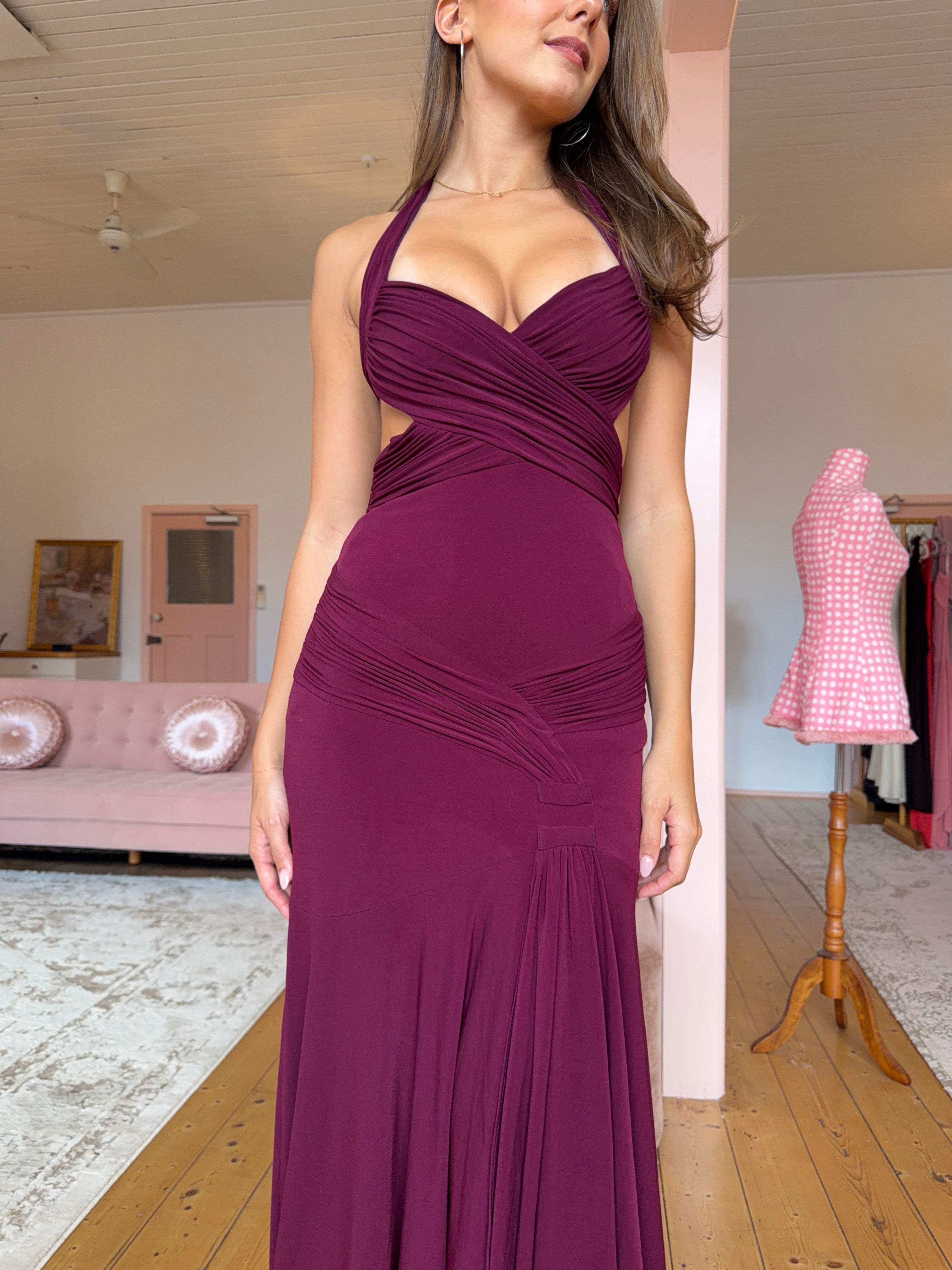 Bringing you a striking maxi featuring a sculpted cross-over bodice and flowing asymmetric hem. Size S model is 5’9.