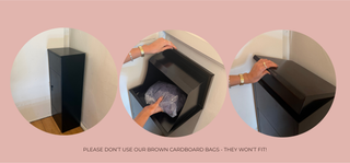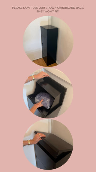 Our large cardboard pickup bags don’t fit inside the return box.
